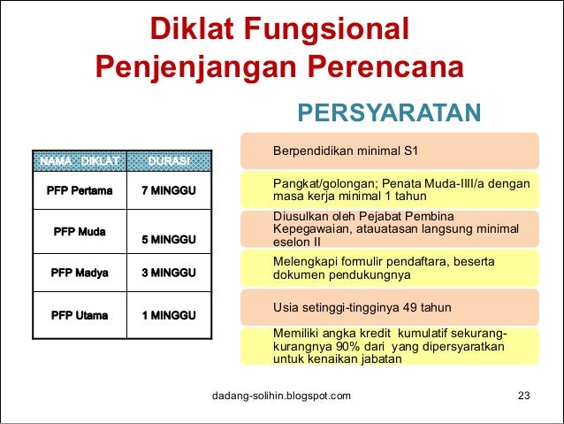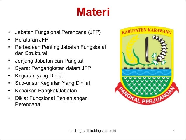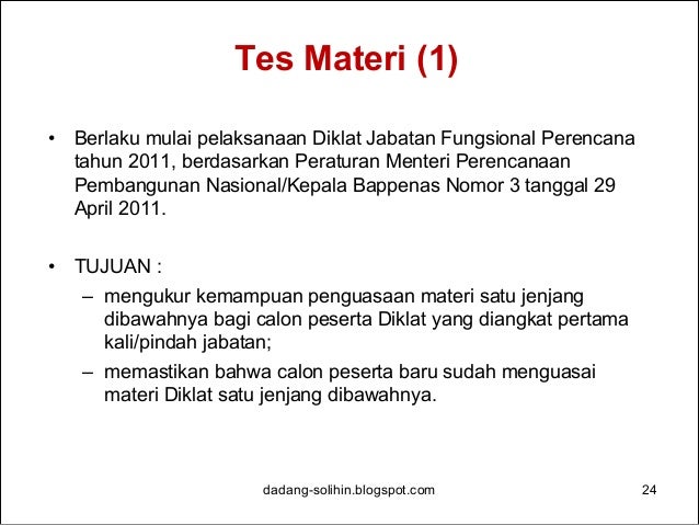 Pegawai negeri sipil (pns) yang telah dan/atau masih menjalankan tugas di bidang perencanaan berdasarkan keputusan pejabat yang berwenang. Materi tes masuk tni ad telah diinformasikan pada situs resmi. Akhir pendaftaran 28 pebruari 2013; Peraturan presiden republik indonesia nomor 44 tahun 2007 tentang tunjangan jabatan fungsional perencana. Membimbing dan menyampaikan materi pembelajaran kepada peserta tentang obyek kerja sesuai prosedur dan.